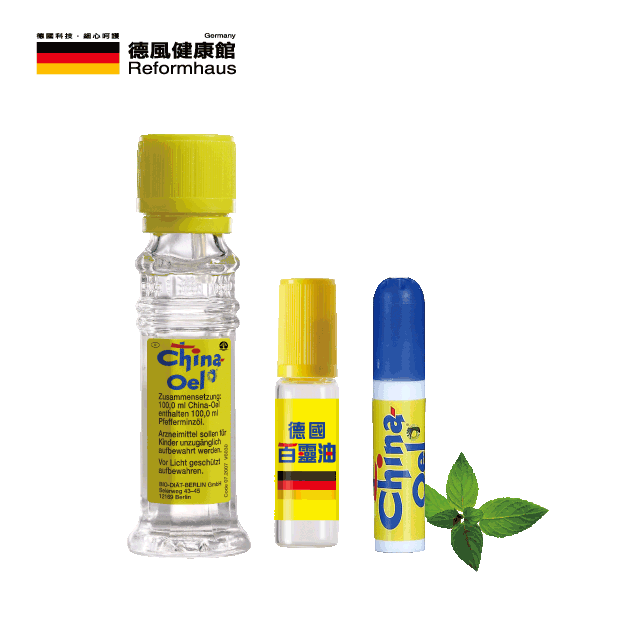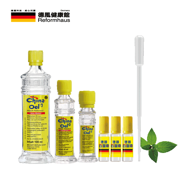 Dầu China oel của Đức sử dụng nguyên liệu là bạc hà tiêu (Tên khoa học:Mentha Piperuta), là 1 loại thảo dược có tác dụng giảm stress và thanh mát, đã được Châu Âu quan tâm sử dụng từ cổ xưa。